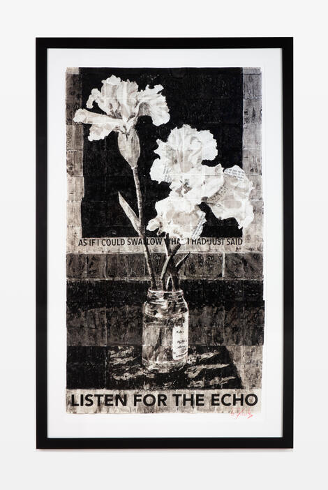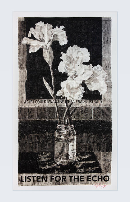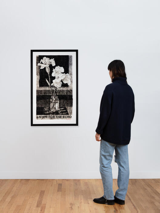 William Kentridge is South Africa's most important contemporary artist, best known for his prints, drawings and animated films. Artspace’s large-scale limited edition Listen for the Echo (2015/2022) showcases the qualities for which Kentridge is widely celebrated; the artist seldom works in color, allowing tonality and contrast to create tension and heighten the impact of text, which is frequently employed in his work. Kentridge has been making large scale images of flowers for many years, often referencing real arrangements that were given to the artist to commemorate specific occasions in his life.