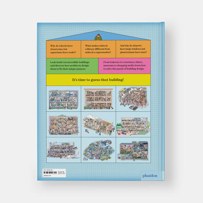 A playful introduction to design and architecture with cutaway scenes of ten buildings, featuring an interactive guessing game and search-and-find