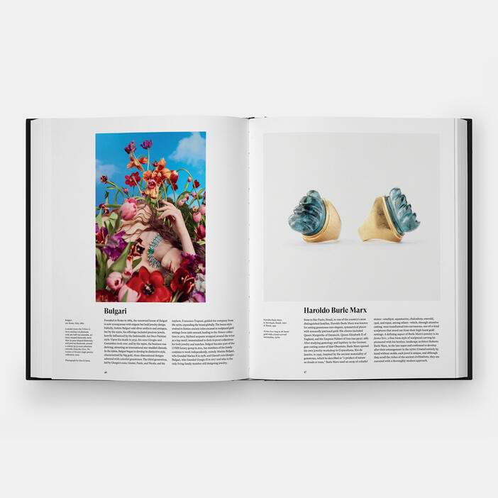 The Jewelry Book is arranged in A to Z order, placing early stars and iconic brands alongside today’s most innovative designers and creatives. Entries ranging from Boucheron, Buccellati, Cartier, René Lalique, Elsa Peretti, Hemmerle, Tiffany & Co and Van Cleef & Arpels to Iris Apfel, Wallace Chan, Loulou de la Falaise, Olivier Rousteing, James de Givenchy, and Elizabeth Taylor reveal the jewelry world’s inextricable connection to fashion, art, and culture.